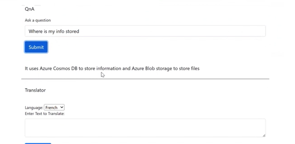 Azure, JavaScript, HTML, CSS, Cosmos DB, Blob Storage