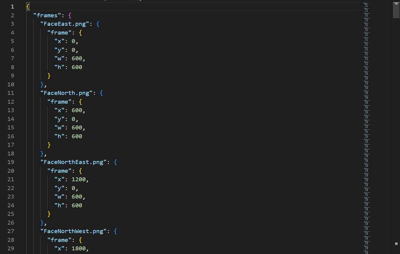 Features:Screenshots of the spritesheet image and json data made by the site:
