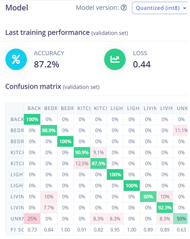 The system had originally been very accurate but the more phrases I added that were similar such as; Bedroom Light vs Livingroom Light, then the more likely the model will mix the words up. I may have made this more complicated by using multiple command phrases and could be better off with more unique command words. Either way the model had 70% accuracy when tested live despite a low number of audio samples.